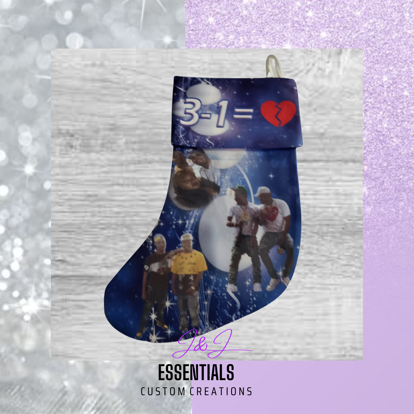 Perfect gift for friends and families during the holidays. It will definitely leave an everlasting memory. The will be 3 upload options because you can use up to 3 pictures to be added to the stocking.